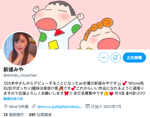当然啦,当大家知道新道みや(新道美夜)不是佐竹のん乃(佐竹音乃)那负面效应会很强烈,不过有趣的是新道竟然有了twitter也亮出经纪公司Mine’s的招牌⋯