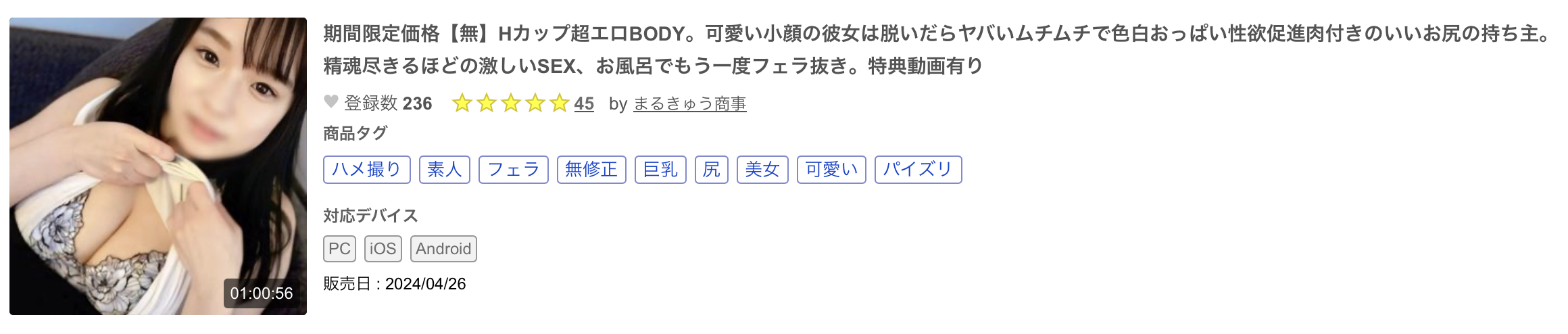 没错,从左脸那两颗痣可以确认,那位出道时被片商形容是「小颜」及「肥大ボディ(肥大Body)」的西村礼奈已经被无码卖家捕获了,从标题「Hカップ超エロBODY。可爱い小颜の彼女は脱いだらヤバいムチムチで色白おっぱい性欲促进肉付きのいいお尻の持ち主。精魂尽きるほどの激しいSEX、お风吕でもう一度フェラ抜き」就知道如果不是英雄所见略同就是卖家很清楚西村礼奈的身分,因为他也强调这位女优有着可爱的小脸、肉感的身材以及H罩杯的大奶ー所以最后她下结论了,这是个超级色的BODY(超エロBODY)!
