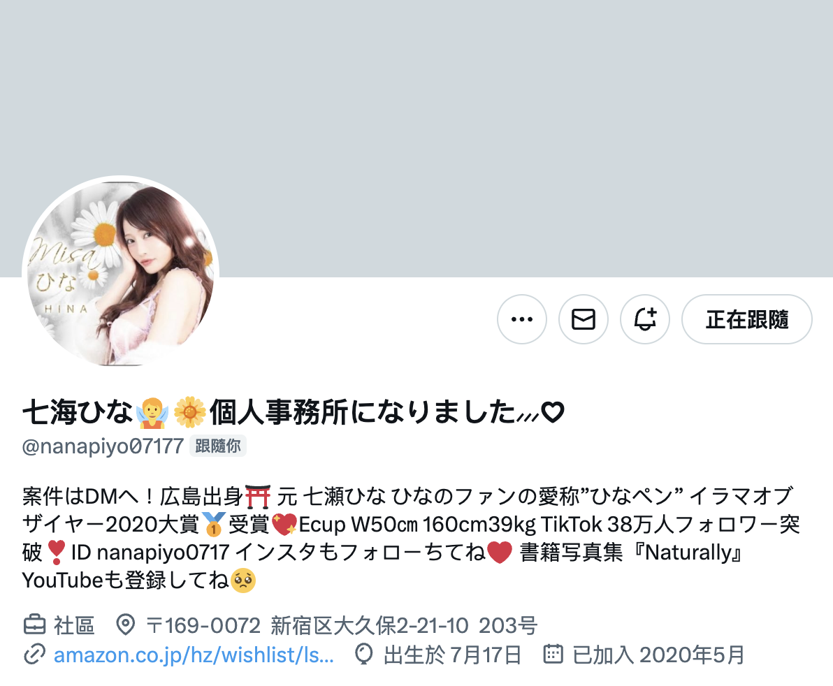 只是她换了事务所把名字从七瀬ひな(七濑雏)改为七海ひな(七海雏),然后又退出经纪公司成立个人事务所,最后是在去年(2023)逐渐淡出⋯这样看好像日下部ひな(日下部雏)是「一不小心」爆出自己真实的身分,但实际上不管是从基本资料、脸蛋以及身体特征的比对就可以知道日下部ひな(日下部雏)并不是七海ひな(七海雏) ,两人绝对不是同一人: