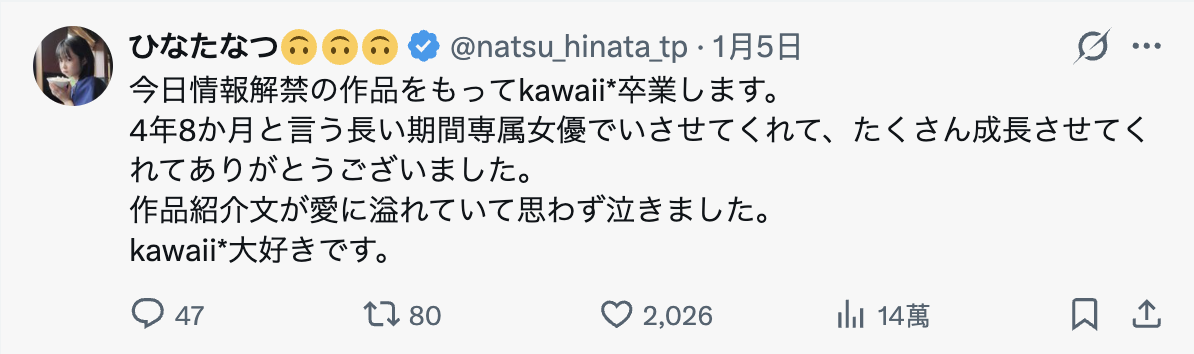 在可爱社(kawaii*)待了四年八个月之后,ひなたなつ(日向夏)要离开了!