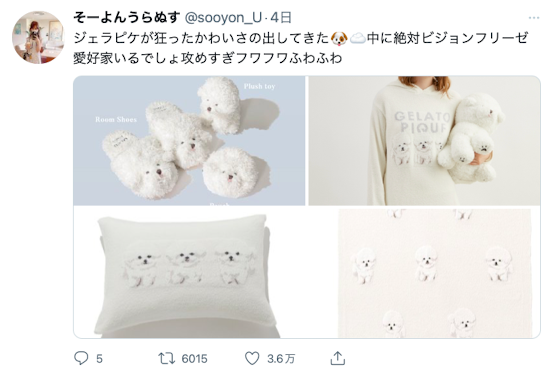 没有发文,她只对三篇推文点了讚:两篇是来自Fashion Press这个帐号的商品推送(一个是冰棒,一个是ちいかわ饭店的菜单介绍),剩下一篇则是ジェラートピケ(gelato pique)这个牌子最新的商品介绍,是狗狗造型的拖鞋和枕头,剩下的就是去年大家祝她生日快乐的发文,她没删掉,然后,没了。